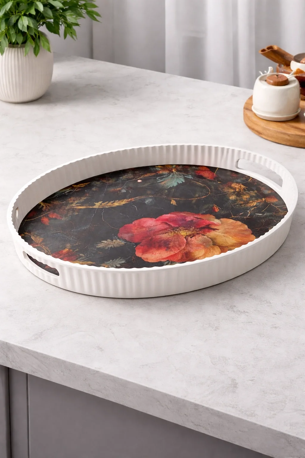- 6 kişilik kullanım için ideal, çok renkli tasarımıyla sofralarınıza şıklık katan ikili sultan tepsisi.