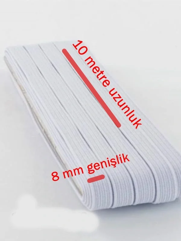 Bel Paça Don Lastiği Geniş Yassı Lastik 10 Metre 8 mm beyaz