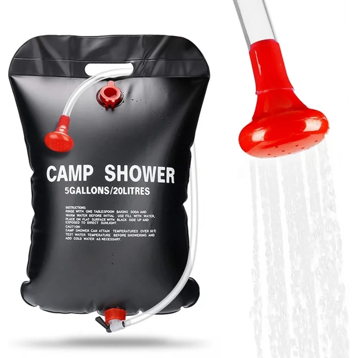 Kamp yaparken temizlenmek ve doğanın tadını çıkarırken ferah bir duş almak artık çok kolay. Efsane Kamp Duşu, siyah malzemesi sayesinde güneşten yararlanarak suyu ısıtır ve sizin için doğal bir sıcak duş imkanı sunar. 20 litrelik geniş su kapasitesi, birkaç sefer duş alabilmenize olanak tanır. Musluk ve duş başlığı sayesinde suyun akışını kolayca kontrol edebilirsiniz, böylece su tasarrufu sağlarken keyifli bir duş deneyimi yaşarsınız.