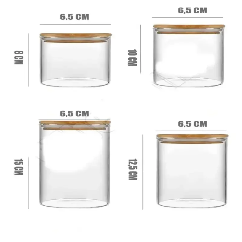 Vakumlu Bambu Kapaklı Cam Kavanoz Borosilikat Cam Vakumlu Baharatlık Saklama Kabı Organizer