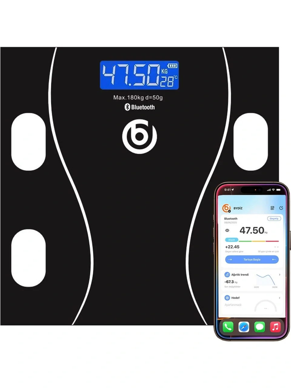 Modern yaşamın vazgeçilmez yardımcısı olan bu dijital baskül, vücut kompozisyonunuzu detaylı bir şekilde analiz etmenize olanak sağlar. 28x28x4,5 cm boyutlarındaki şık tasarımı, temperli cam ve dayanıklı ABS mühendislik plastiğinden üretilmiştir. 180 kg'a kadar ölçüm yapabilen bu akıllı tartı, Bluetooth 4.0 ve üstü teknolojisi ile telefonunuza bağlanarak yağ oranı, su oranı, kas kütlesi ve vücut kitle endeksi gibi önemli verileri OKOK uygulaması üzerinden takip etmenizi sağlar. Android 4.4 ve iOS 7.0 veya üstü işletim sistemleri ile uyumlu olan cihaz, 2 adet AAA pil ile çalışır. Kullanımı kolay dijital ekranı ve hassas ölçüm teknolojisi ile günlük sağlık takibinizi kolaylaştırır. Banyo veya yatak odanızda şık görünümü ile yer kaplamadan kullanabileceğiniz bu tartı, vücut kompozisyonunuzu profesyonel düzeyde izlemenize yardımcı olur.
