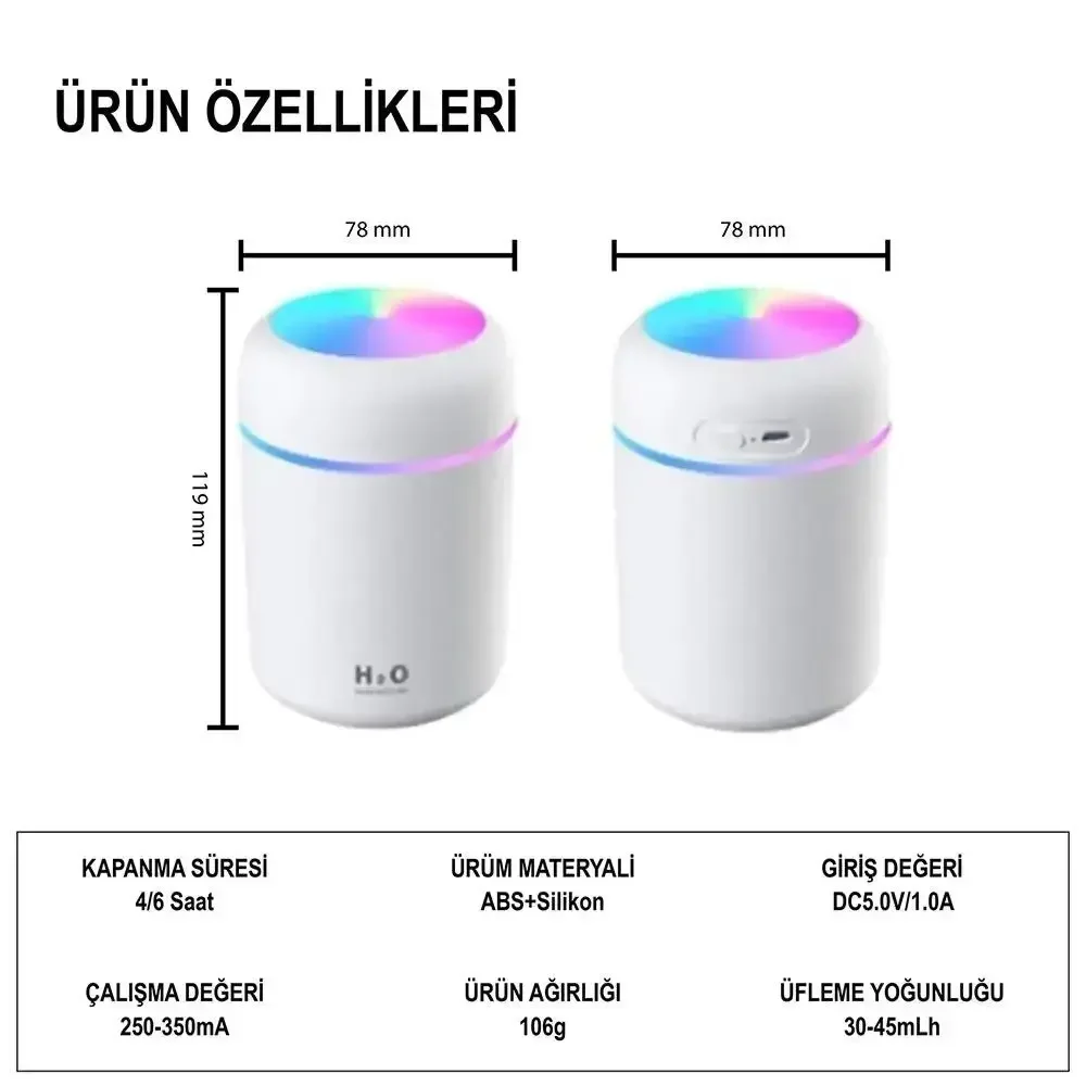 H2o 300 ml ulrasonik hava nemlendirici ve aroma difüzörü